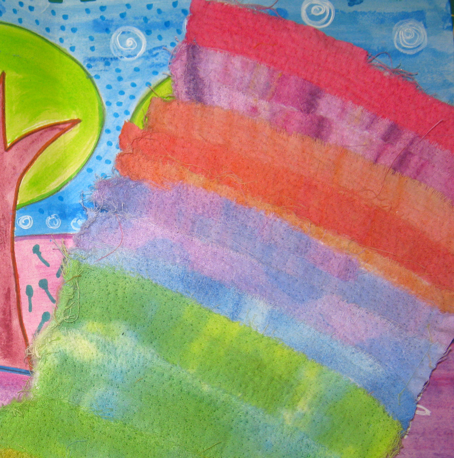 The view is of a derelict building. It always looks different, depending on the time of day or time of year. I added some shading with a fabric pen.