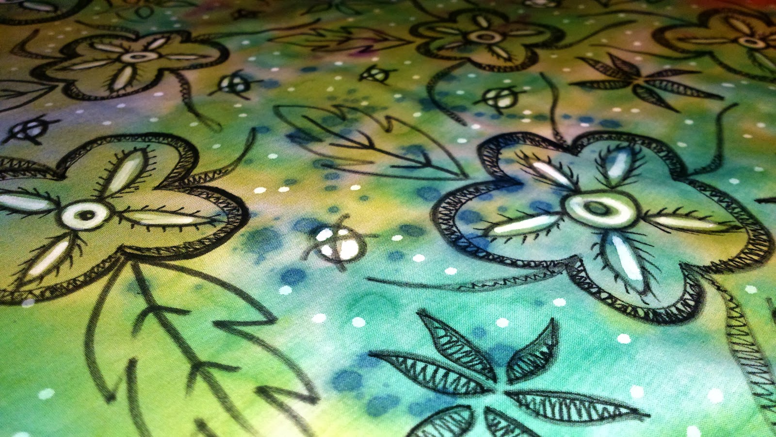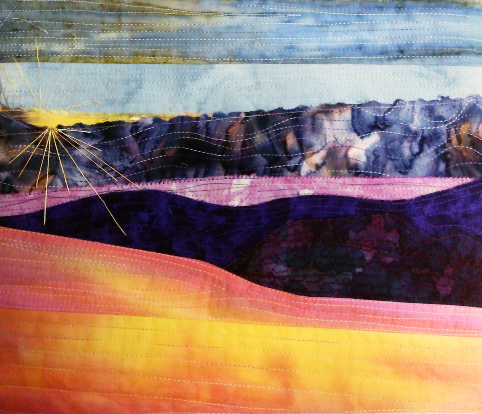 I have painted a lot of sunset fabrics but it took a student to show me that these could also be a snow covered landscape as the sun goes down.