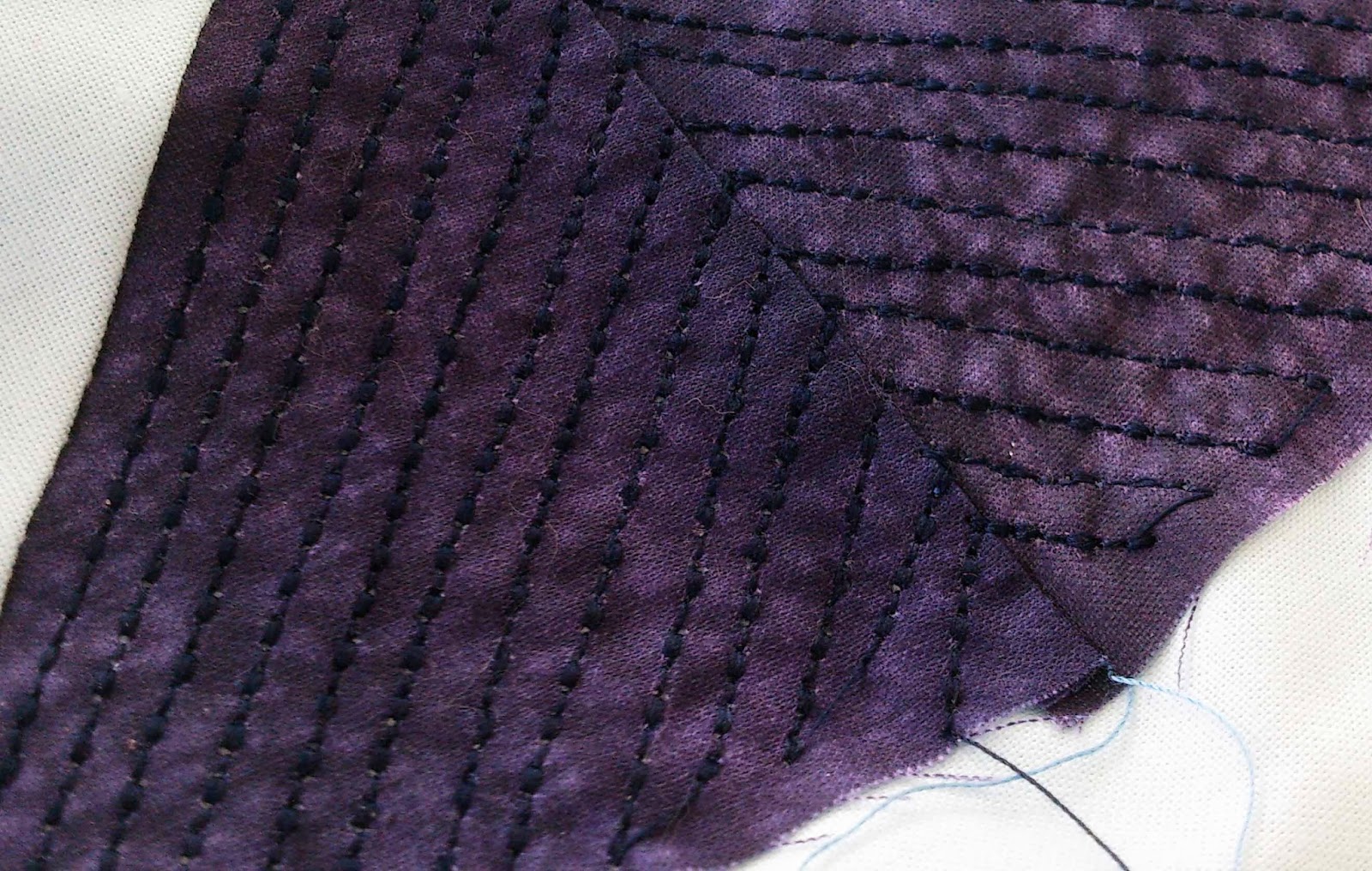 You cab see my hand stitching here (and it is stitching not quilting because I have not added any wadding yet).